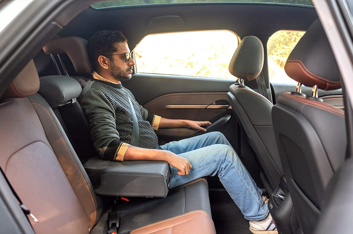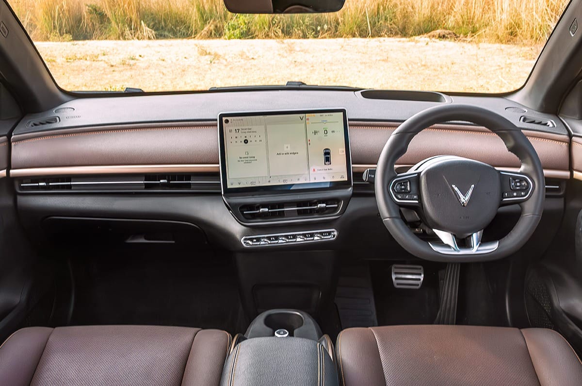 News is better up front, where space – and the sense thereof – are good. The low dash, devoid of an instrument panel, gives a great view forward and the powered driver’s seat has good adjustability, though cushioning is a tad firm. To prevent the minimalist dashboard from looking too sparse, Vinfast has done well to use chocolate brown leatherette trim on the dash (contrast stitched in orange) and a champagne gold trim piece that runs the width as well.