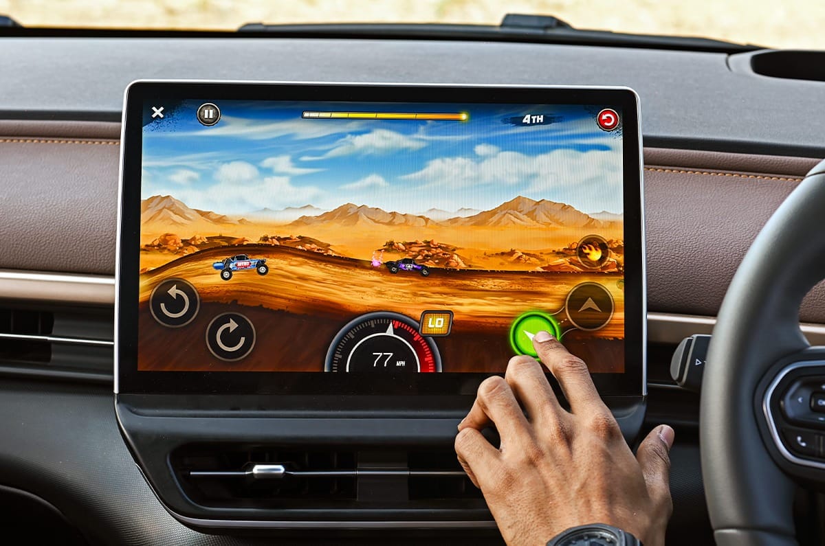 The features list on the Wind trim includes wireless Apple Carplay and Android Auto, an 8-speaker audio system, electronic parking brake, a crisp-looking 360-degree camera array, an informative driver HUD, dual-zone climate control, a PM1.0 filter, auto headlamps and wipers, ventilated front seats, a powered driver’s seat, to name some. Interestingly, if you don’t want the aforementioned ‘Infinity’ glass roof, you can have the top VF6 Wind trim without it and save Rs 50,000 in the process. And oddly, while there are two USB ports up front and two at the rear, they’re all the older Type-A variety.