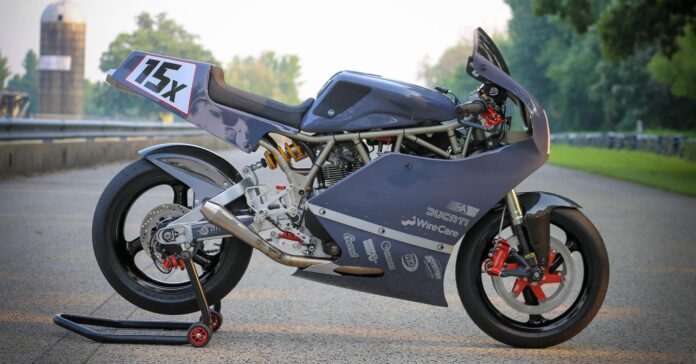 “We started the process at the end of last year, trying to sort out what chassis we were going to use. We considered some of the liquid-cooled four-valve Ducatis, but upon much investigation, it was decided that the SuperSport would probably be the best candidate. Then, in February, we crashed the Hyper8 on the last rainy race of the weekend.”