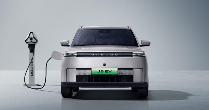 Externally, the electric SUV is distinguished from other Jaecoo J5s via a unique, closed-off grille with active aero.
