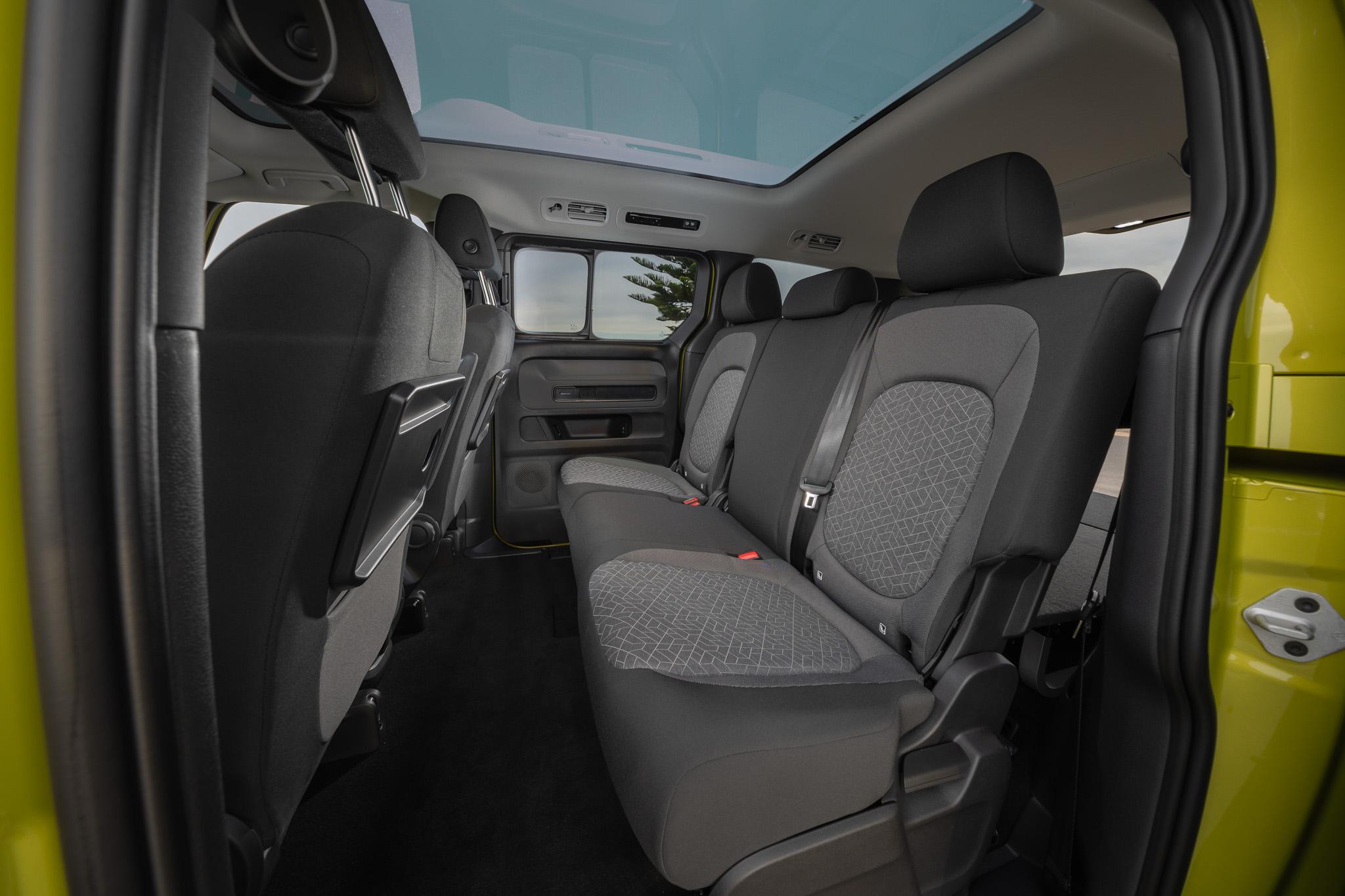 Inside, there’s a 12.9-inch infotainment touchscreen including a 360-degree camera, wireless phone charging, and seven USB ports throughout, plus front and rear parking sensors.